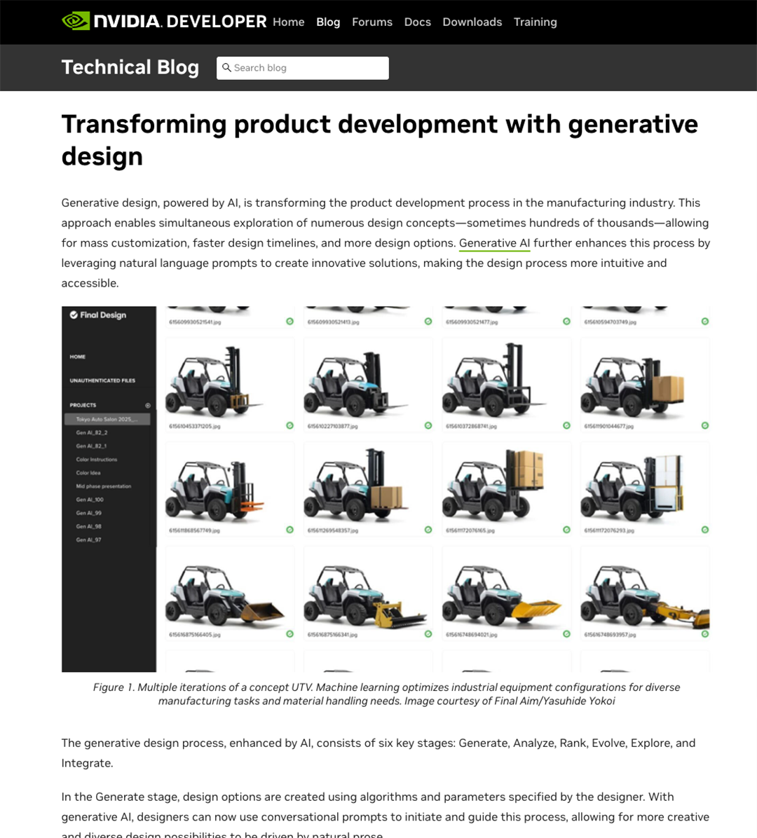 NVIDIA DEVELOPER Technical Blog – “Transforming Product Design Workflows in Manufacturing with Generative AI”